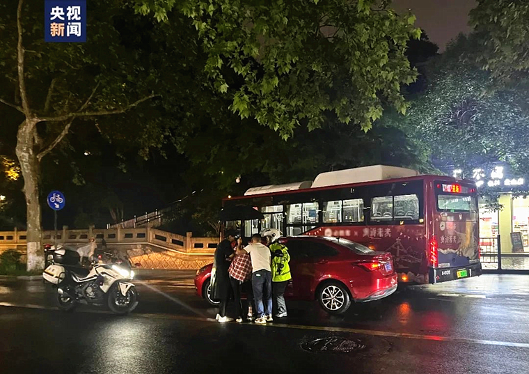 见到她时,她正护一位女士去近旁的车里落座,一位男士帮着撑伞。女子违规横穿马路时被撞,撑伞的,是撞她的车主。