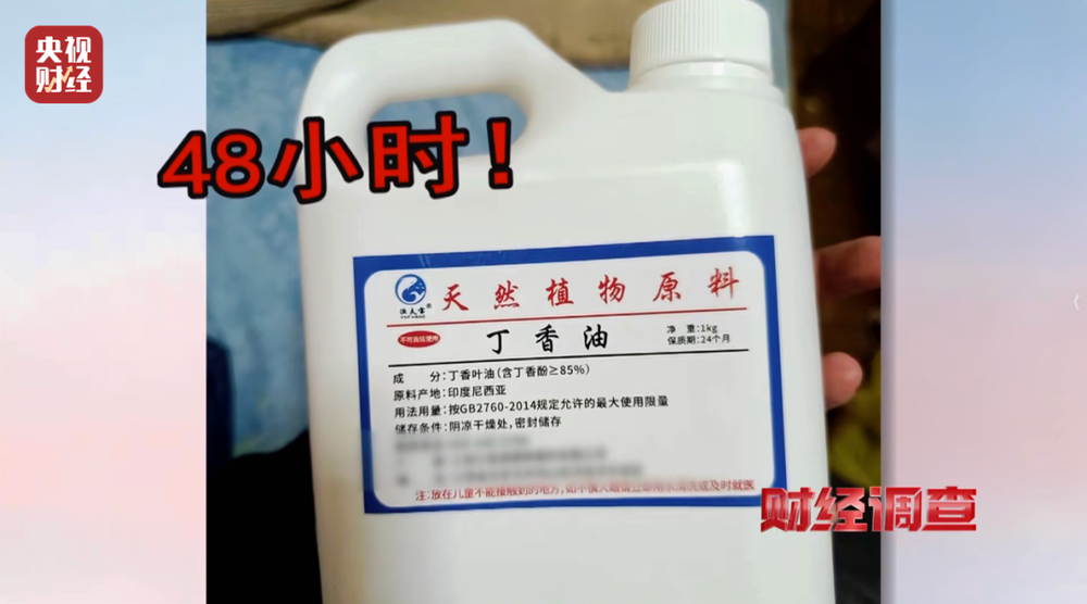另有工厂透露,因为丁香酚不溶于水。商家为让麻醉剂快速渗透、起效,最简便的做法就是使用工业酒精勾兑。