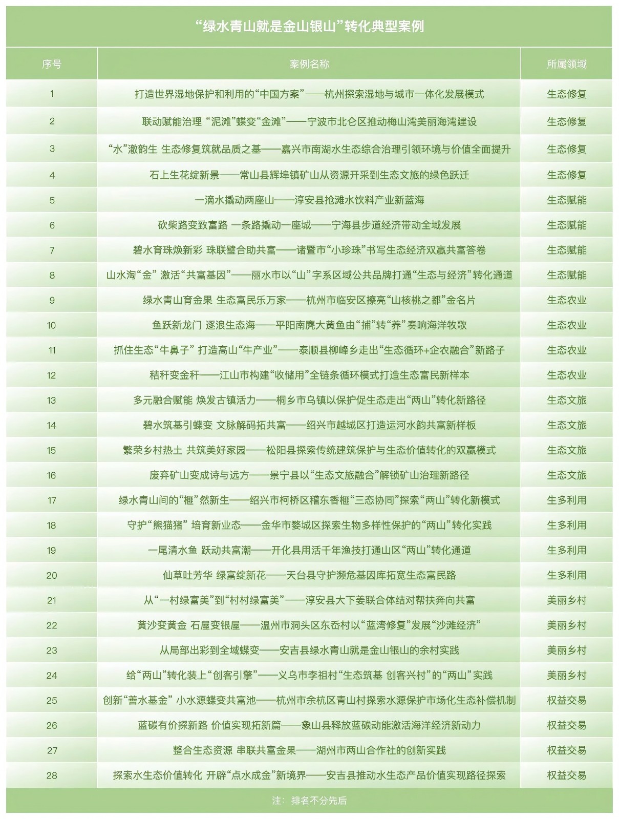 浙江省“绿水青山就是金山银山”转化典型案例和入围案例公布